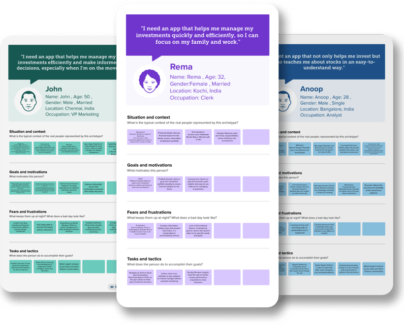 Captured information on different types of users and made 3 personas to represent them.